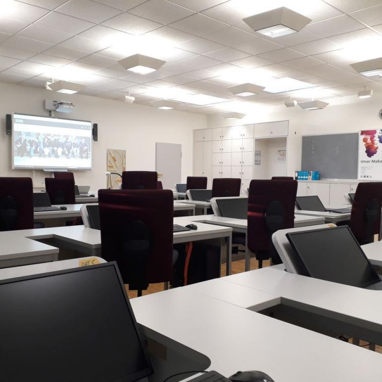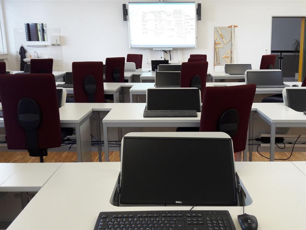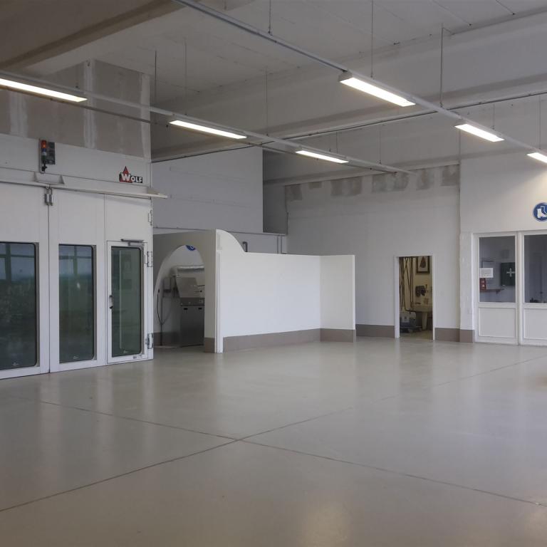 Unsere Ausstattung und die Räumlichkeiten entsprechen den aktuellsten Standards: Neben neuen Boxen für die praktische Aus- und Weiterbildung der Maler und Lackierer und einer Ausbildungshalle mit modernen Lackier- und Trockenkabinen für die Fahrzeuglackierer sind auch die Räumlichkeiten für den theoretischen Unterricht mit Computern ausgestattet.