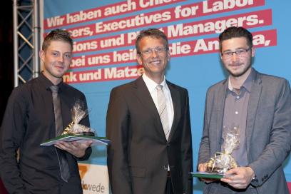Andres Seibel und Julian Schöfflerdurften ganz besonders stolz aufihr Prüfungsergebnis sein. Sie wurden als Beste der insg. 19 Gesellinnen und Gesellen des Kreises Gütersloh geehrt. Der Erstplatzierte, Andreas Seibel,wurde im Malerbetrieb Alfred Junkerkalefeld in Rheda-Wiedenbrück ausgebildet und Julian Schöfflerim Malerbetrieb HerwardLieneweg in Werther.