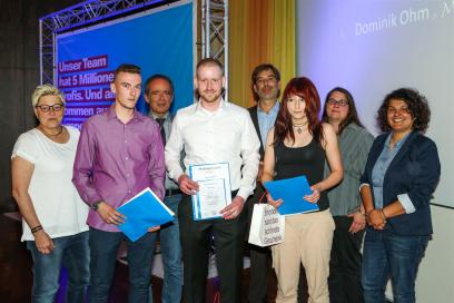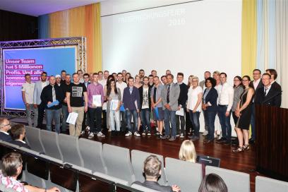Direkt im Anschluss durften dann aber auch die restlichen Absolventen auf ihre verdiente Bühne und glücklich ihren Gesellenbrief und die Glückwünsche der Prüfungskommission entgegennehmen, bevor sie stolz den Moment mit einem gemeinsamen Gruppenfoto festhalten ließen.