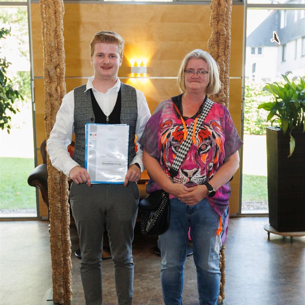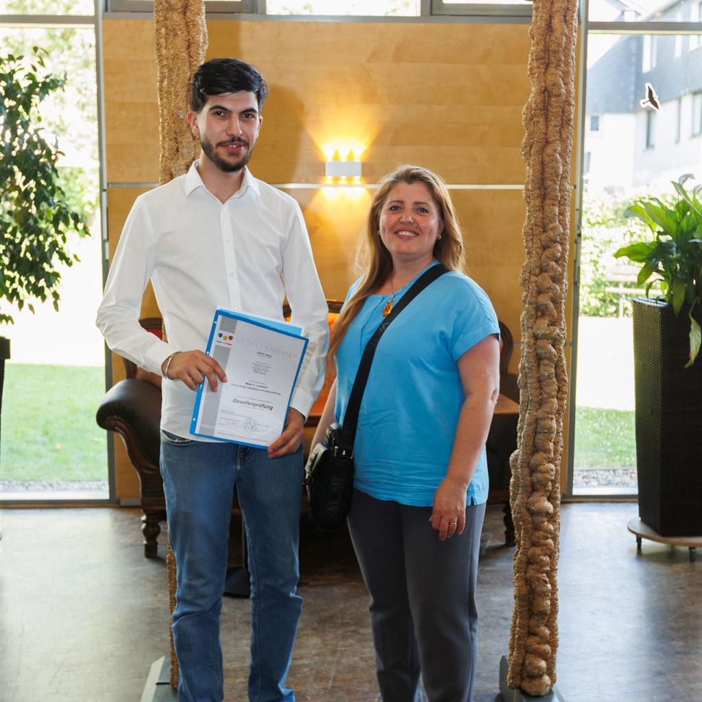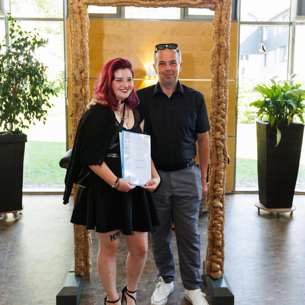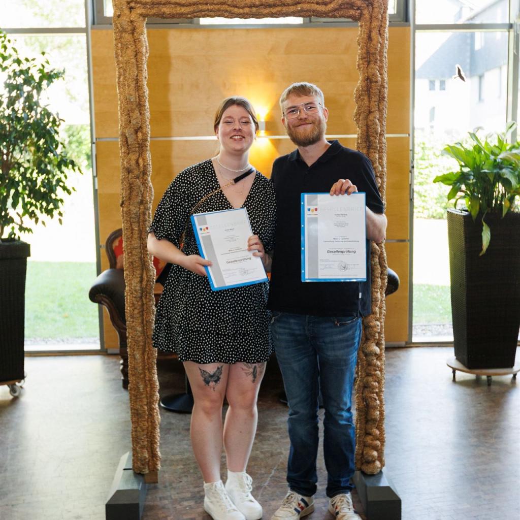 Anja Nierhoff-Install und Matthias Sander nutzten die Gelegenheit, um den Absolventen erneut ihre herzlichsten Glückwünsche auszusprechen und sie daran zu erinnern, dass das Lernen im Leben niemals endet. Der erlangte Gesellenbrief eröffnet den Absolventen neue Türen und ermutigt sie, ihren eigenen Karriereweg weiter auszubauen - vielleicht sogar mit einem Besuch der Meisterschule in ein paar Jahren.