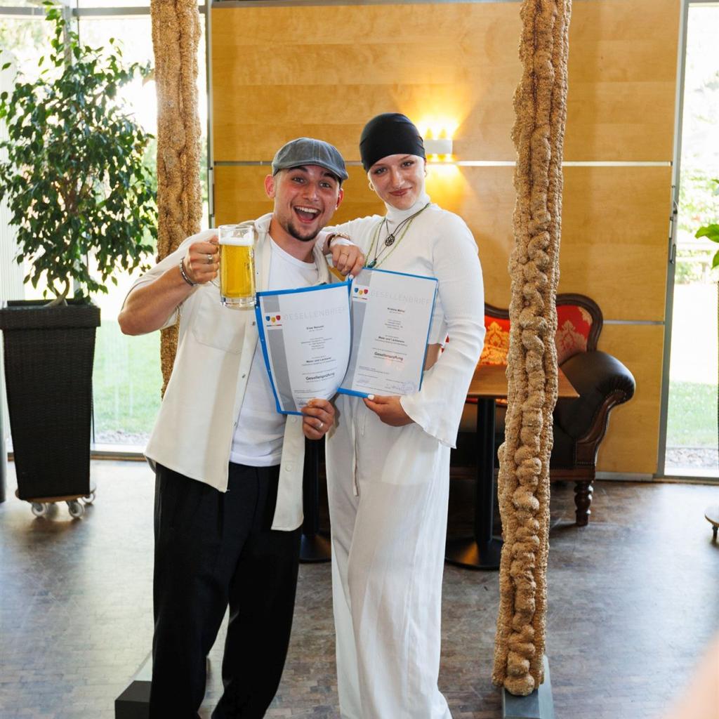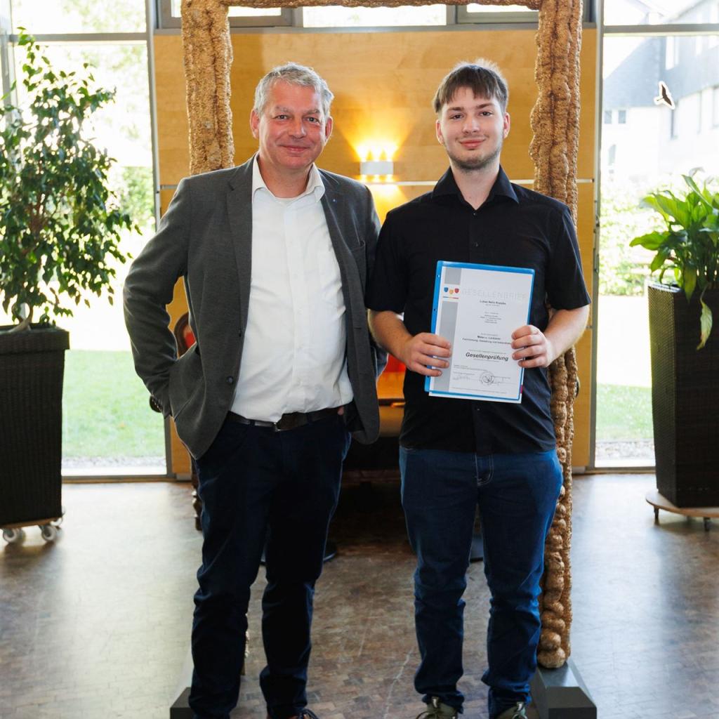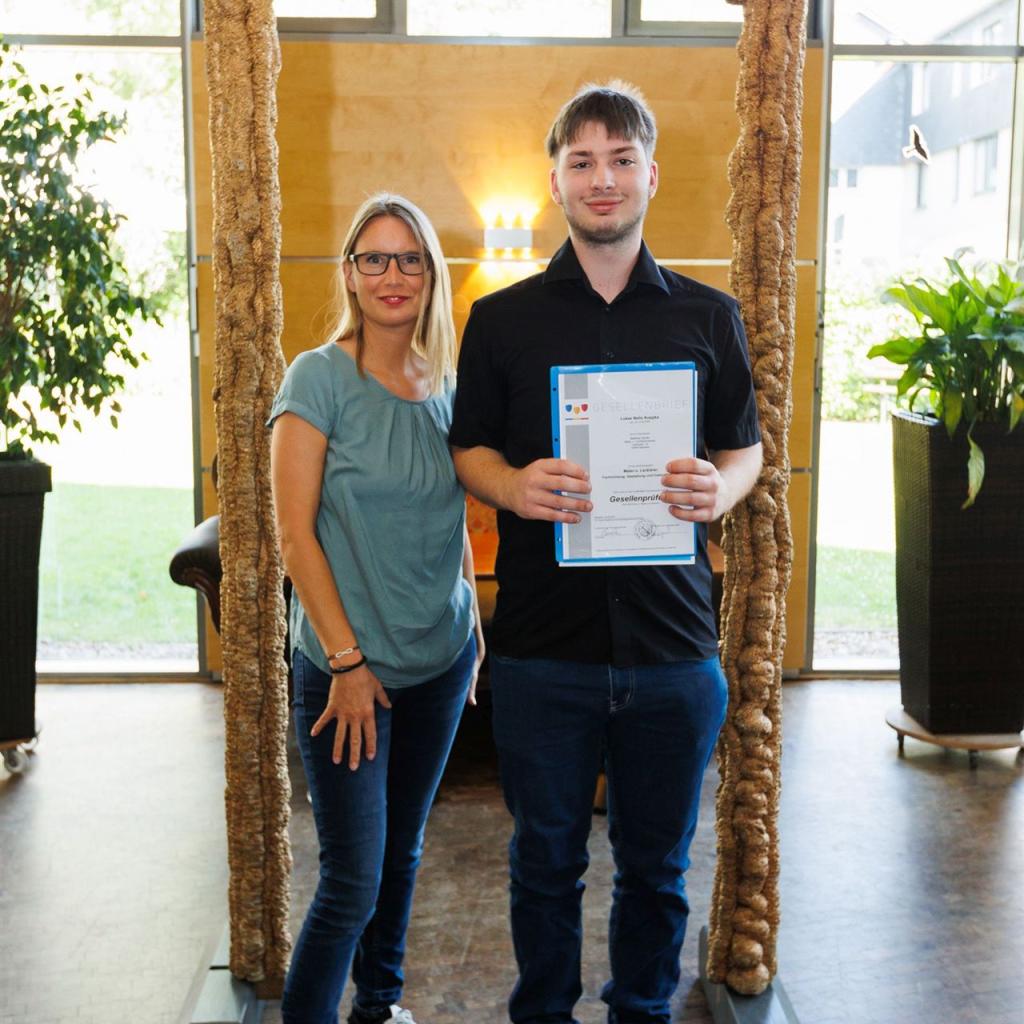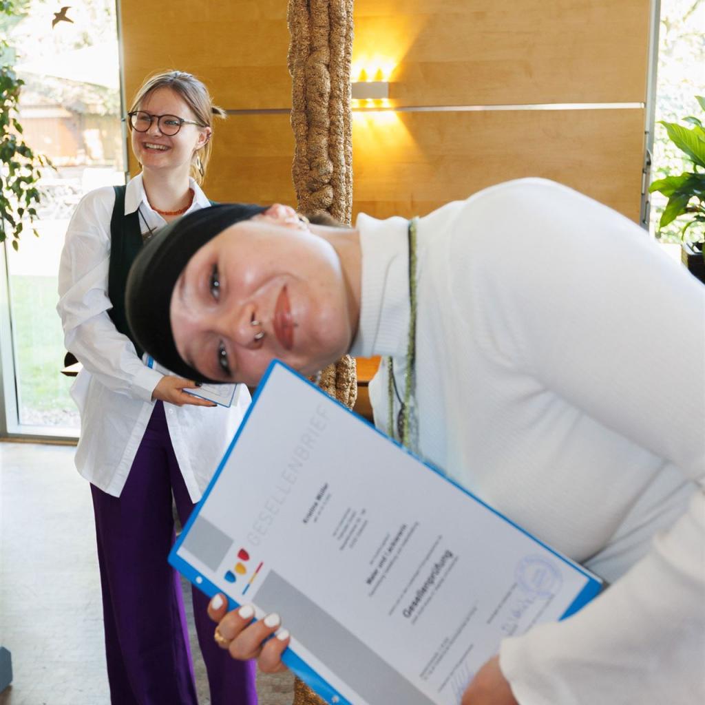 Anja Nierhoff-Install und Matthias Sander nutzten die Gelegenheit, um den Absolventen erneut ihre herzlichsten Glückwünsche auszusprechen und sie daran zu erinnern, dass das Lernen im Leben niemals endet. Der erlangte Gesellenbrief eröffnet den Absolventen neue Türen und ermutigt sie, ihren eigenen Karriereweg weiter auszubauen - vielleicht sogar mit einem Besuch der Meisterschule in ein paar Jahren.